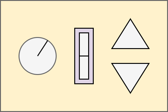 My quest for RGB LED arcade buttons revealed only round options. For aesthetic purposes, it is important to me that there be shape differentiation between the switches for cycle time control and color select. And I’m pretty attached to triangles for increment and decrement. So, I’ve come up with the design in Version 3 where I’m now using a round RGB LED button for color select and a slider for cycle time.