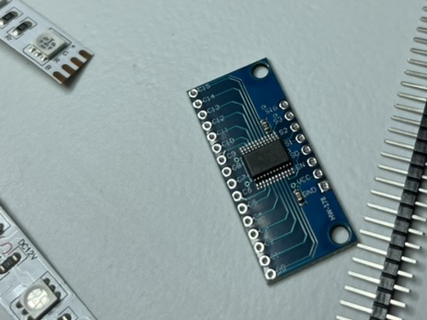 Now I’m back to using ALL the Arduino PWM output pins to wire up the four LED strips. I’m a bit apprehensive about maxing out the available analog output pins, so I’ve ordered a new multiplexer, the CD74HC4067, as a backup solution for expanding analog outputs. The new parts have arrived, so I’ll be soldering and testing them this weekend… 🤞