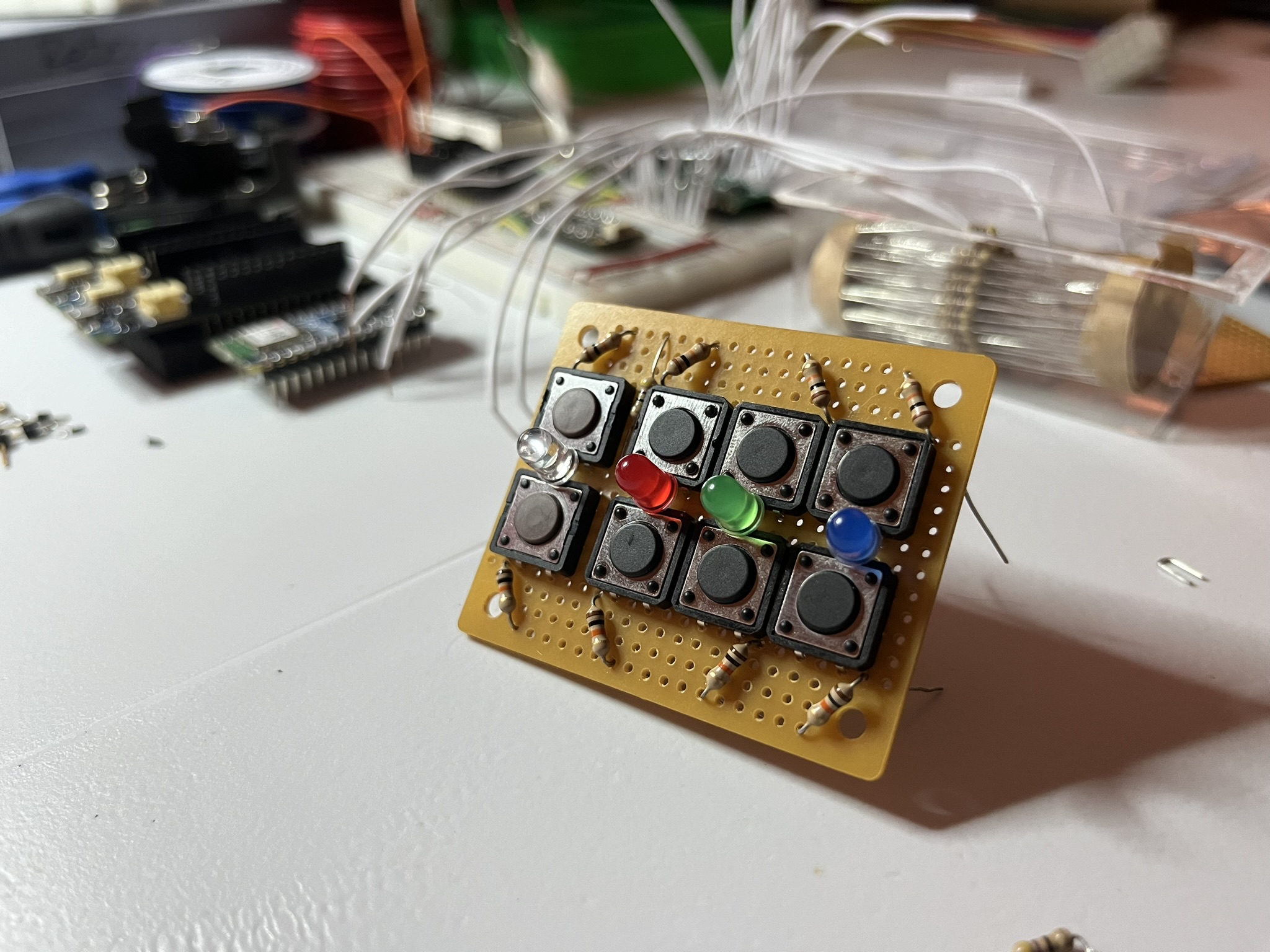 The next step in the ColorClock saga is to design the software implementation for the participant-facing user control panel. I wired up a little prototype for testing. The final design will use arcade buttons embedded in an enclosure that will house the electronics.