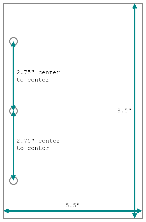 Set your holes to punch at the following measurements to fit in a 3-ring mini binder: