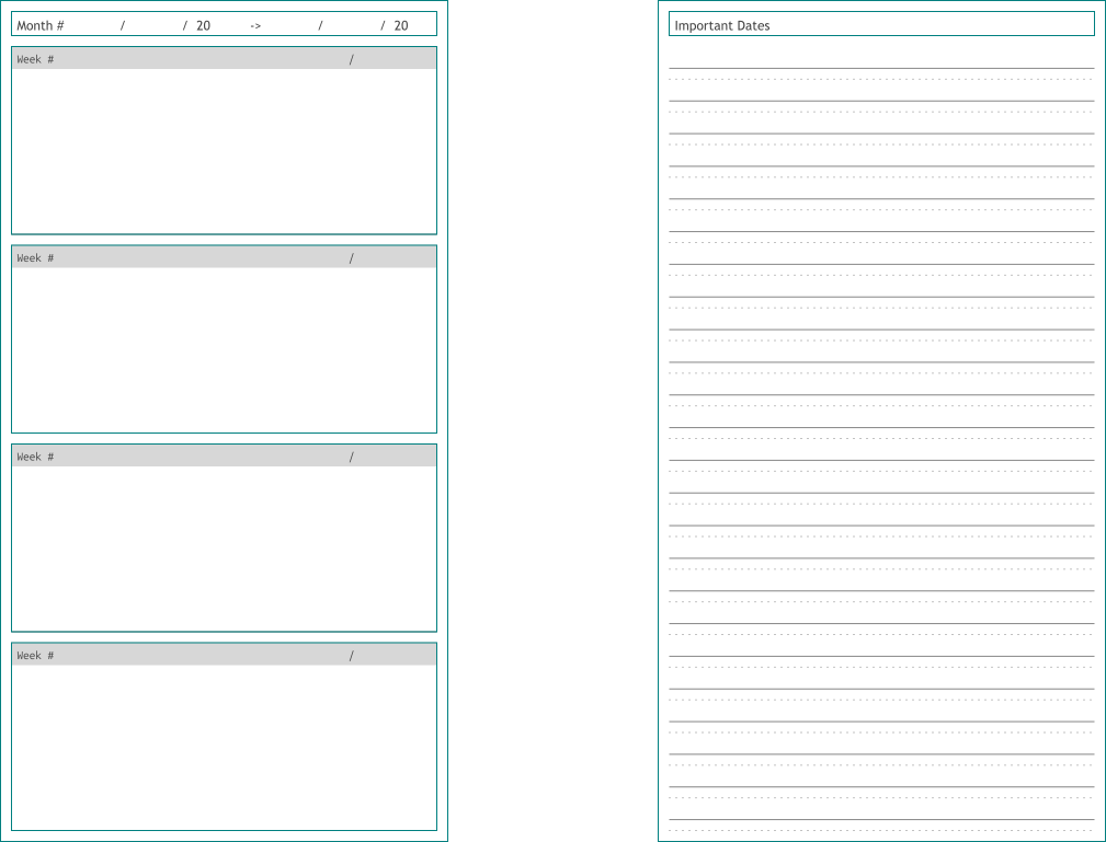 Use the calendar section however it best supports you, whether for goal targets or noting important dates.