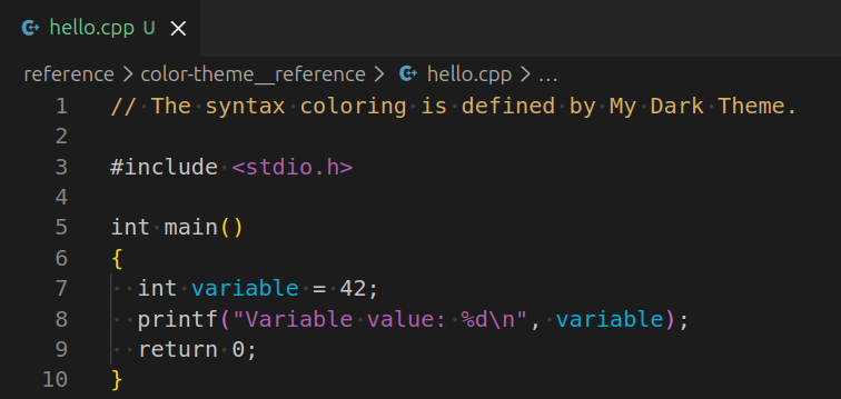 A detailed example on how to create and load a Visual Studio Code color theme file