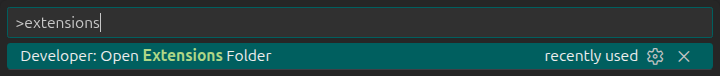 Note: If you installed VS Code in a non-conventional way, your extensions directory might exist in a different location than listed above. Verify the location of your extensions directory by selecting Developer: Open Extensions Folder from the command palette.