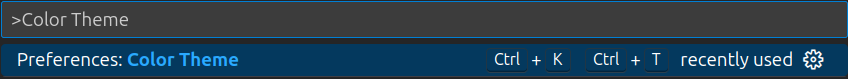 To load the theme, from the search bar type >Color Theme and select Preferences: Color Theme. You can also pull up this search bar with the shortcut Ctrl+Shift+p.