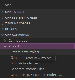 In VS Code, select QNX from the Activity Bar on the left side of the screen.
