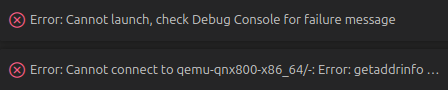 Error: Cannot connect to qemu-qnx800-x86_64/-: Error: getaddrinfo EBUSY -